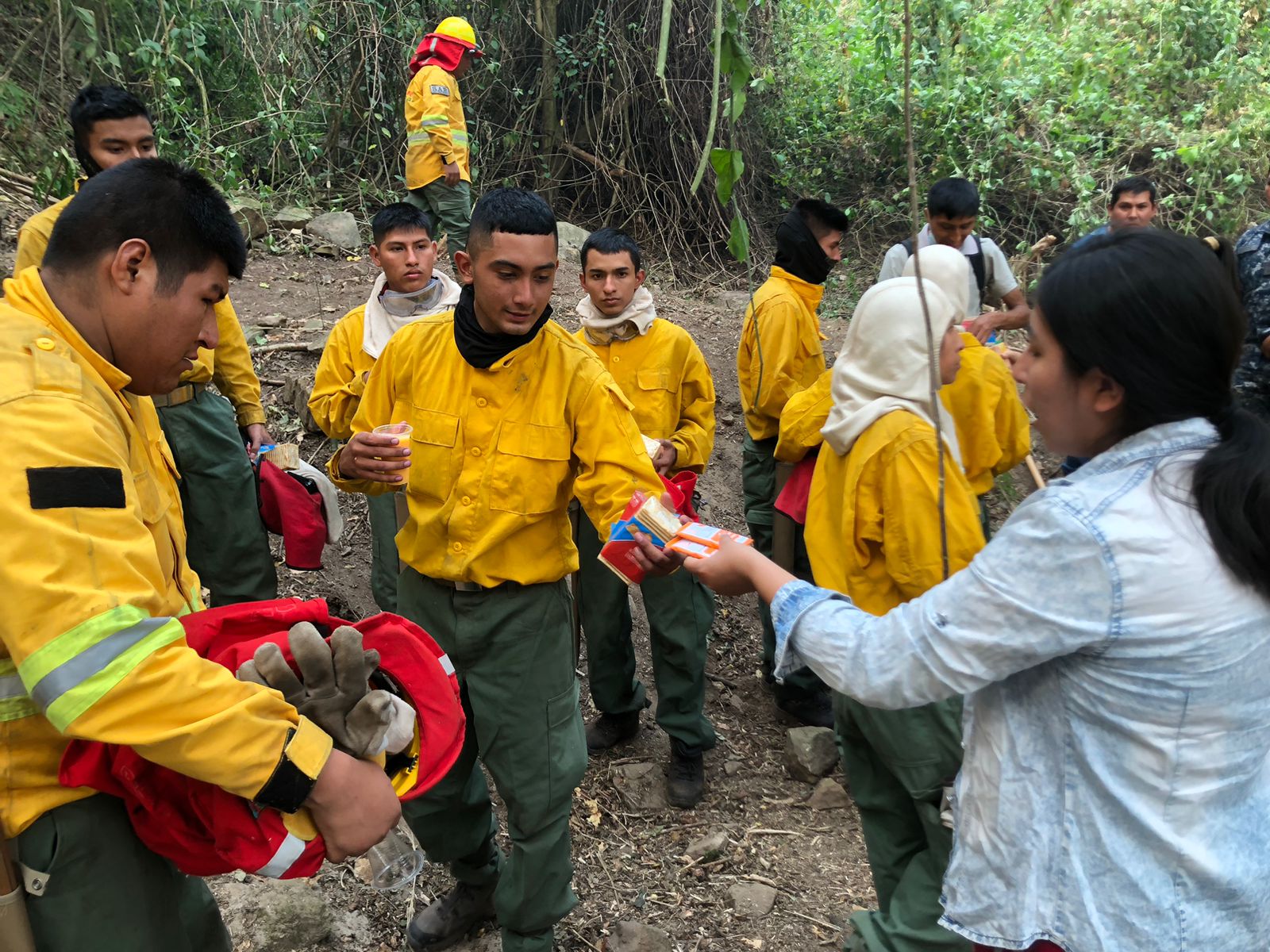 Foto: Brigadistas son asistidos en un punto de incendio/RRSS